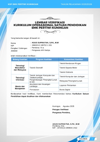 KSP SMK PERTIWI KUNINGAN TAHUN PELAJARAN 2025/2026