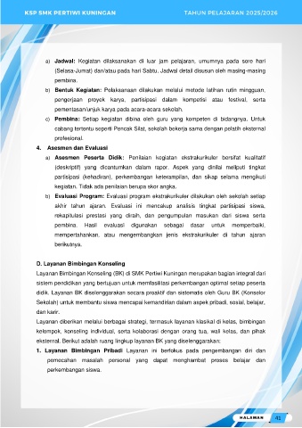 b) Evaluasi Program: Evaluasi program ekstrakurikuler dilakukan oleh sekolah setiap