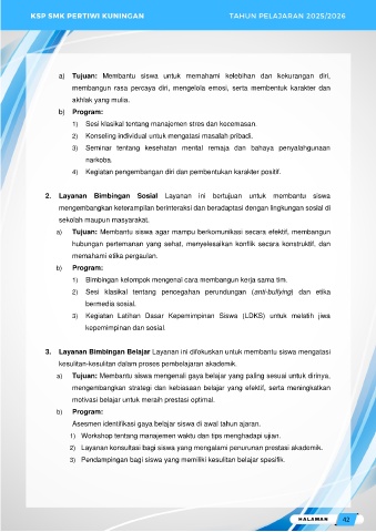 a) Tujuan: Membantu siswa untuk memahami kelebihan dan kekurangan diri,