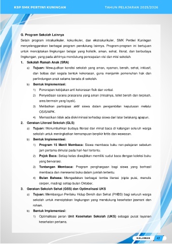 a) Tujuan: Mewujudkan kondisi sekolah yang aman, nyaman, bersih, sehat, inklusif,
