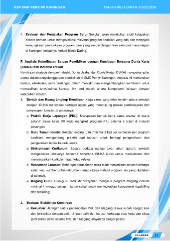 F. Analisis Keterlibatan Satuan Pendidikan dengan Kemitraan Bersama Dunia Kerja