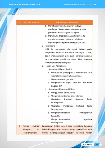 No. Program Keahlian Tujuan Program Keahlian